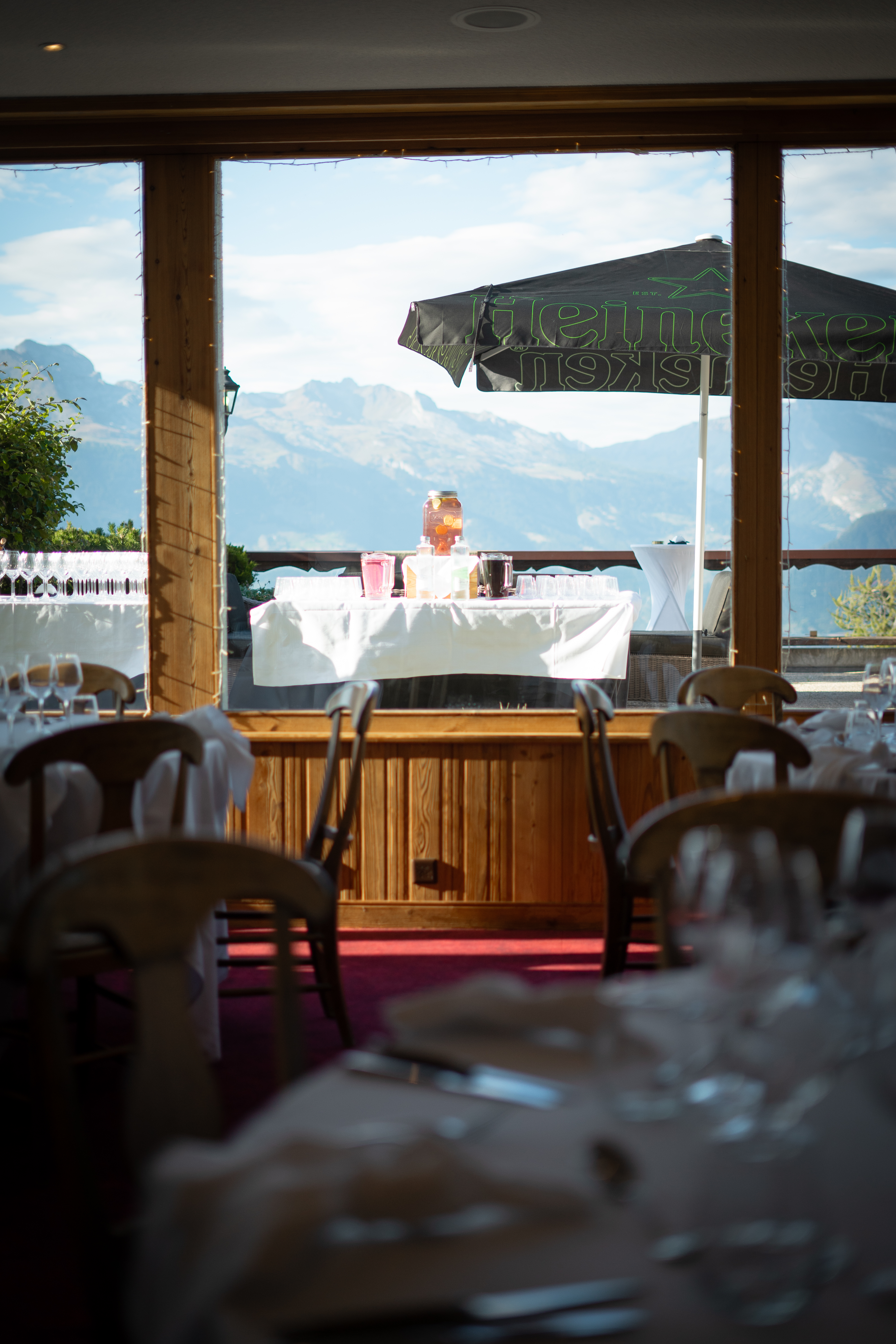 Lieu de réception : Nos trois salons, modulables et pouvant accueillir jusqu’à 150 personnes, sont à votre disposition pour créer l’événement de vos rêves. Profitez également de notre grande terrasse offrant une vue imprenable sur la vallée, idéale pour un cocktail de bienvenue ou même pour une cérémonie en plein air. L'architecture traditionnelle de notre hôtel, typique de la région valaisanne, apporte une touche authentique et chaleureuse, au cœur des majestueuses Alpes suisses. Un cadre unique pour une célébration inoubliable.
